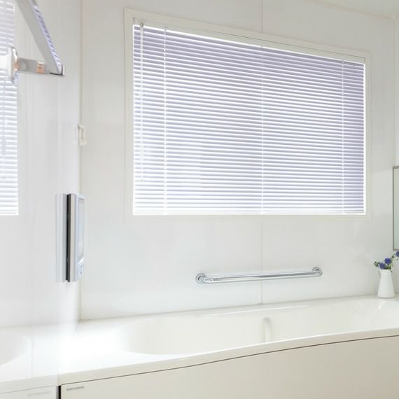水に強くて、サビにくい、浴室・バスルーム用のブラインドです。壁に穴を開けずに取り付けるため、賃貸マンション、和室などにもおすすめいたします。機能面でも優れていながらにして当店最安価格、お買得のブラインドです。スラット幅は扱いやすい25ミリです。
