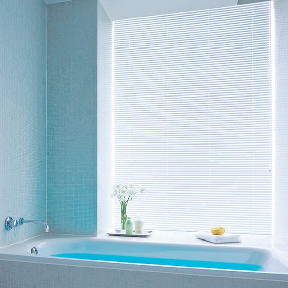 水に強くて、サビにくい、浴室・バスルーム用のブラインドです。スラットだけでなく、ヘッドボックスやボトムレールなど細部にもアルミやステンレス素材を使用。耐水性に優れたパーツを使用しているため、浴室だけでなく、洗面所や結露の気になる場所にもおススメです。スラット幅は繊細な印象の15ミリとなっています。
