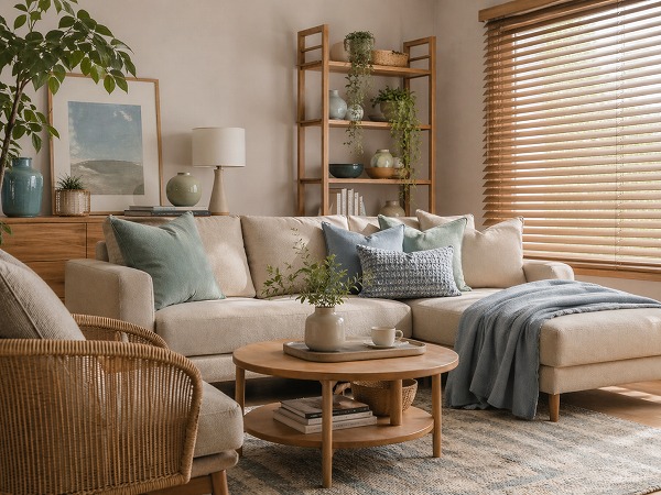 重要なのは、「同じベージュ」かどうかより、「同じトーンの方向かどうか」です。素材が違っても、トーンが近ければ空間はまとまりやすくなります。