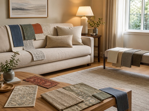 カーテンやラグのサンプルを単体で見ると素敵でも、壁・床・家具と並べたときに強く見えすぎたり、逆にぼやけたりすることがあります。これは「色み」だけでなく、周囲との「トーンのズレ」が原因になっている場合があります。